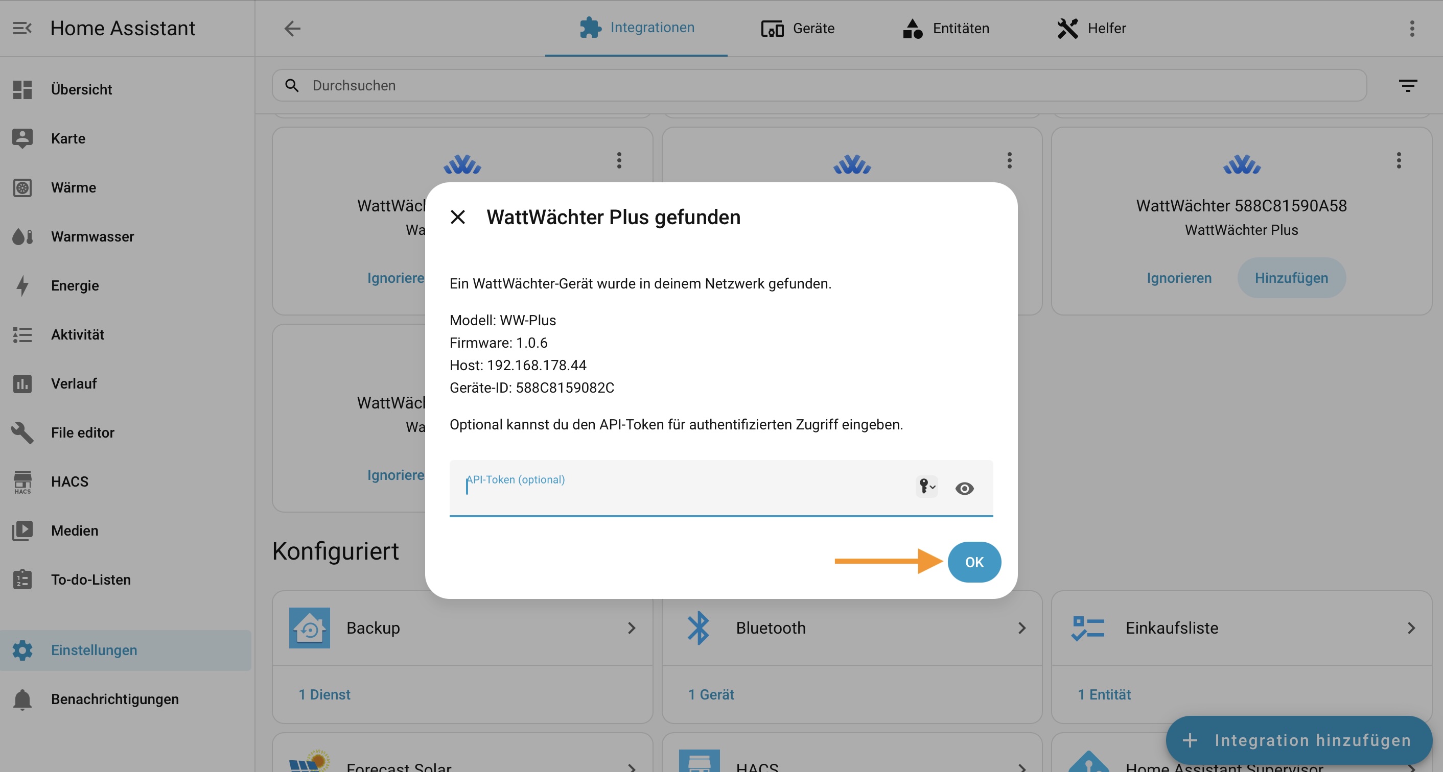 - Home Assistant und der WattWächter im selben Netzwerk/Subnetz sind