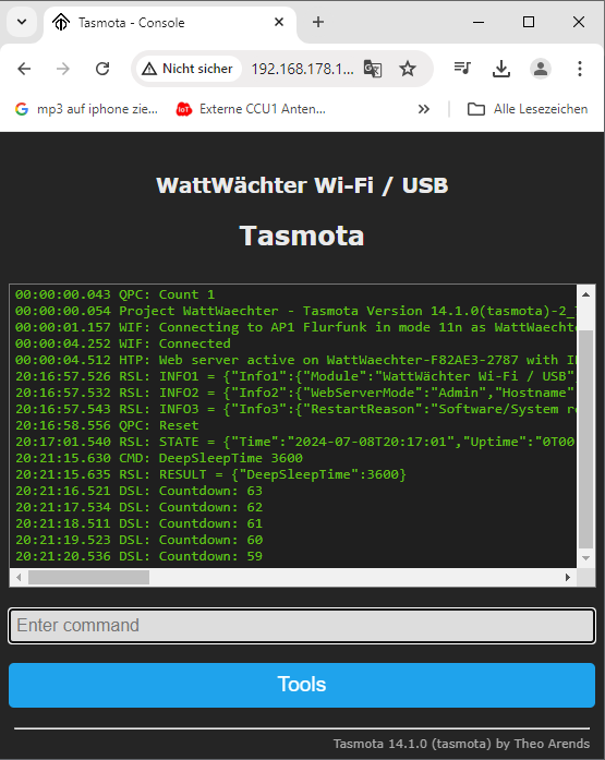 Mit dem Parameter TELEPERIOD wird festgelegt, wie lange der WattWächter nach dem Aufwachen aktiv bleibt. In dieser Zeit verbindet er sich mit dem WLAN, synchronisiert die Uhrzeit, liest die Zählerdaten aus und sendet sie per MQTT.