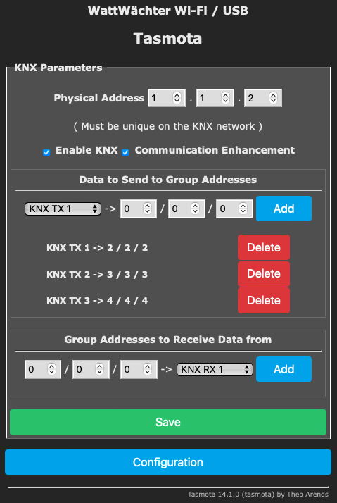 Der WattWächter WiFi/USB kann Messdaten an ein KNX-Bussystem übertragen. Dafür sind drei Konfigurationsschritte erforderlich.