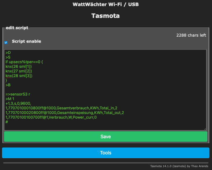 - Funktionierendes Leseskript (siehe Zähler-Skripte)
