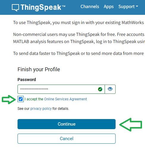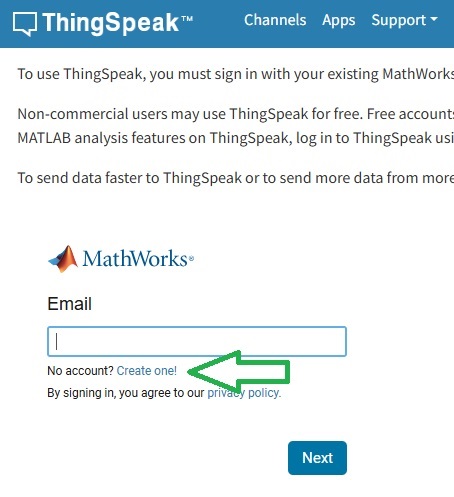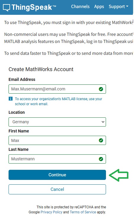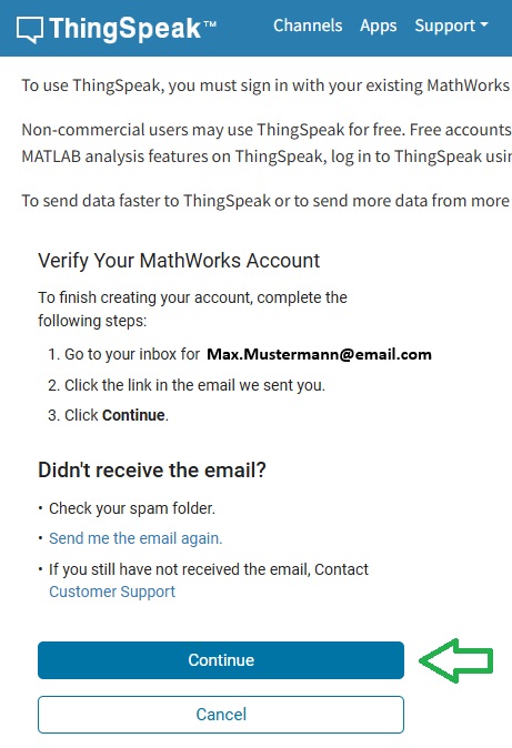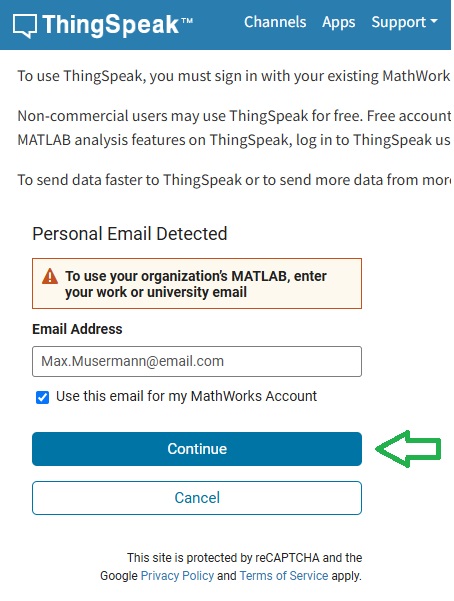 Anmeldung bei ThingSpeak¶