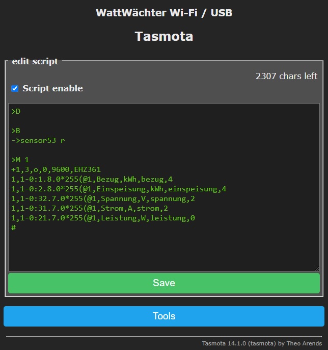 Das komplette Skript stellt sich in Tasmota dann so dar: