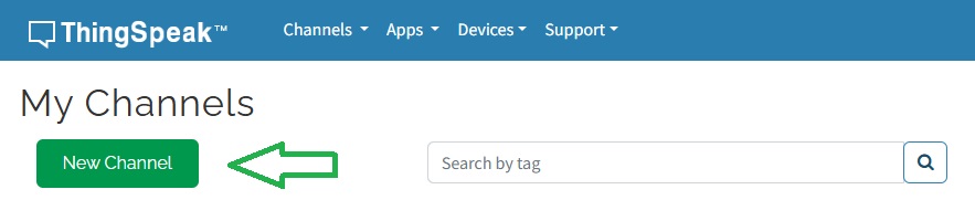 Um einen neuen Kanal anzulegen, klicken Sie in der Übersichtsseite von ThingSpeak auf die Schaltfläche "New Channel".