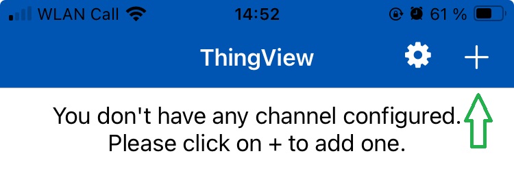 Auf der Startseite der App lässt sich durch einen Klick auf das "+" ein neuer Kanal anlegen.